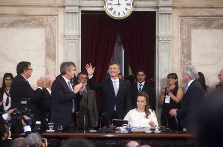 O presidente da Argentina, Mauricio Macri, toma posse neste momento